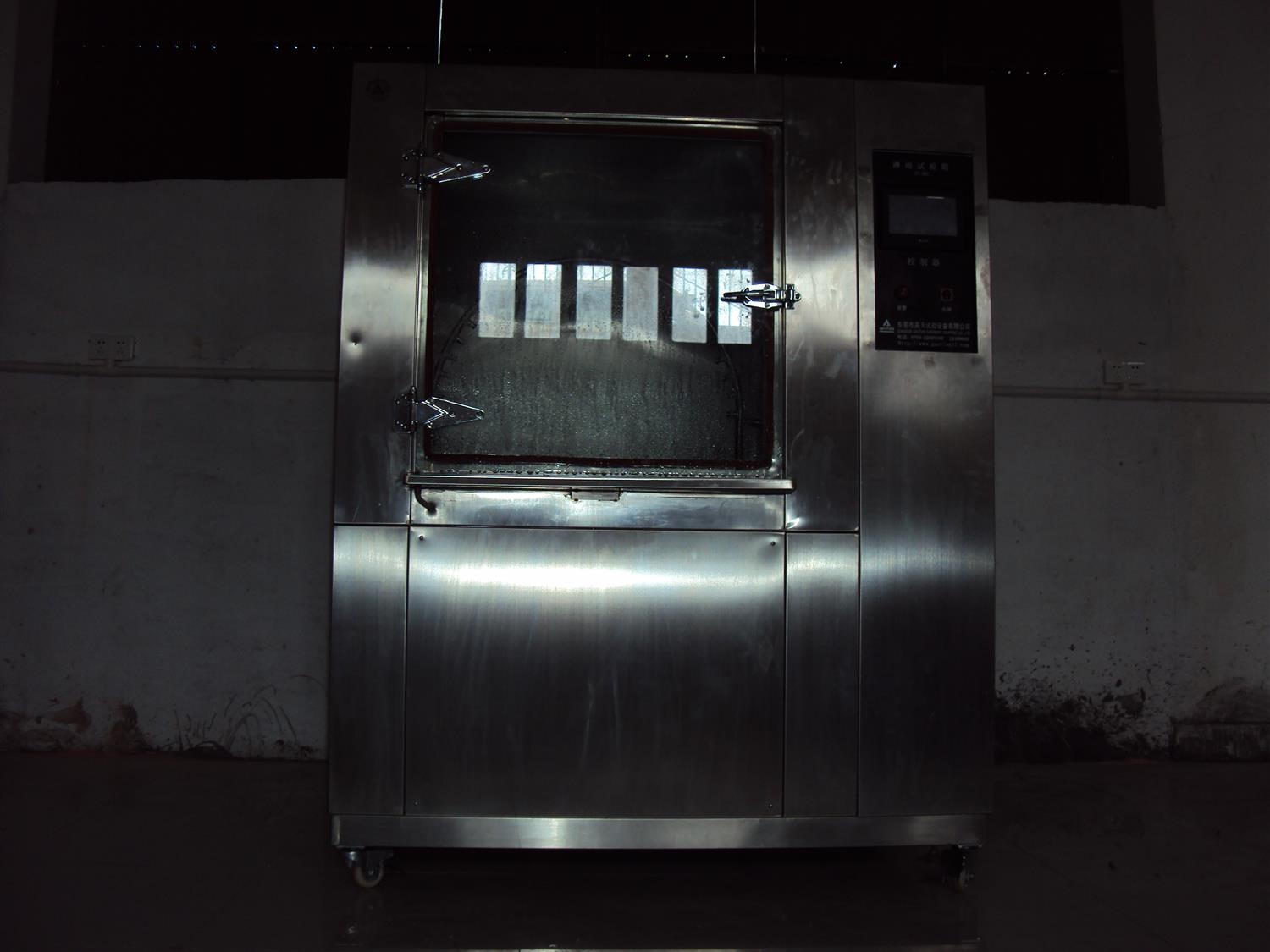 关闭箱门,启动试验。观察摆管运行是否平稳,喷嘴出水是否均匀。通过箱门观察窗监视样品状态,注意是否有异常现象。试验过程中,如需检查样品,应先停止喷淋,待水流停止后再开门。